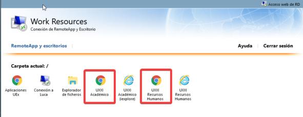 Debemos pinchar en cualquiera de las aplicaciones UXXI con el icono de Google Chrome.