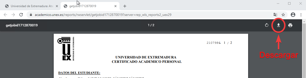 Manual de descarga de documentos desde las aplicaciones corporativas de la UEx
