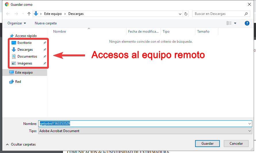 Tenga en cuenta que los iconos que se indican dirigen al equipo remoto y nosotros queremos guardarlo en el equipo local.