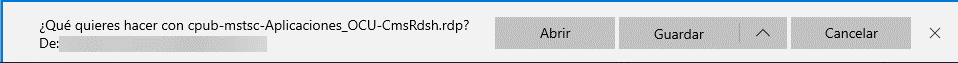 En este punto se iniciará la descarga de un archivo con extensión .rdp , dependiendo del navegador utilizado le aparecerá un tipo de aviso u otro, debe elegir Abrir el archivo.