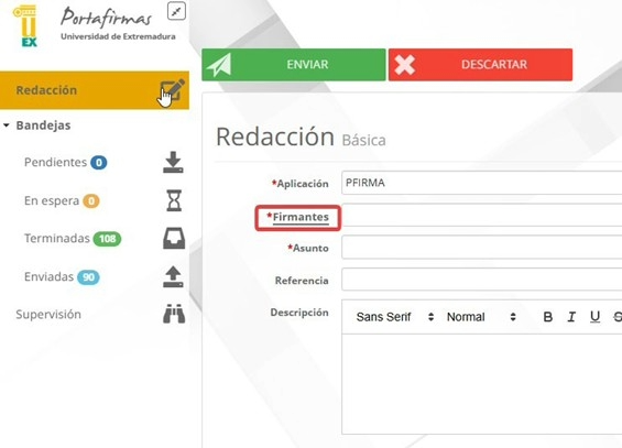 3 En la pantalla de redacción debe hacer clic en “Firmantes”.