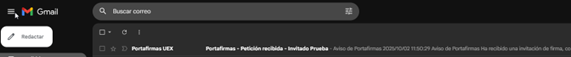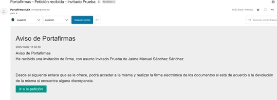 6. El firmante externo recibirá en su buzón de correo un mensaje de correo con la petición de firma,